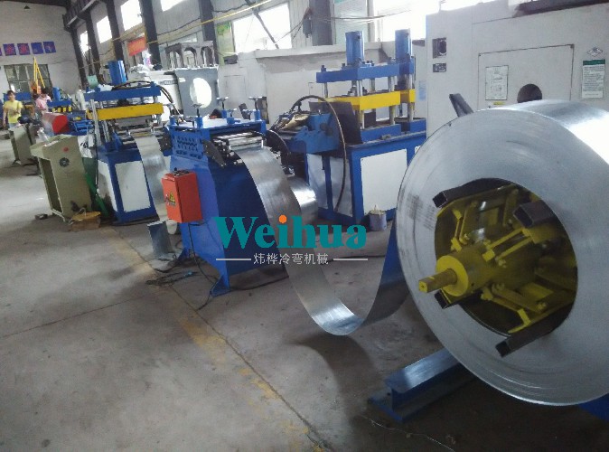 主動(dòng)放料機(jī)、整平送料部分、伺服送料機(jī)、液壓沖壓裝置、滾壓成型部分、定尺切斷裝置、收料臺(tái)及電器控制柜等設(shè)備。